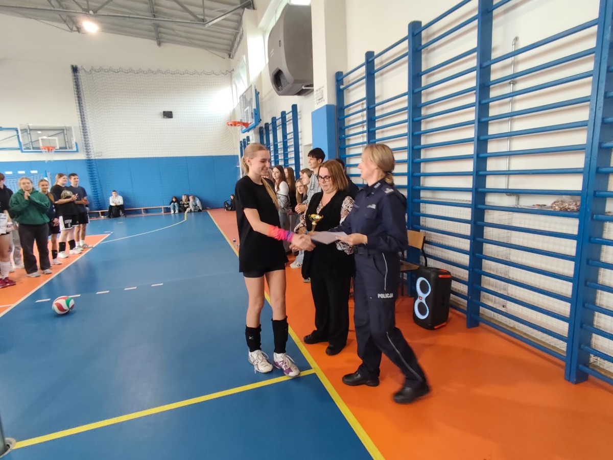 Po zakończeniu rozgrywek odbyła się uroczystość wręczenia nagród. Zwycięskie drużyny otrzymały dyplomy oraz puchary, które podkreśliły ich wysiłek i zaangażowanie. Wszyscy uczestnicy rozgrywek odebrali nagrody z rąk dyrektor szkoły – Agnieszki Dziedzic oraz obecnej na meczu I Zastępcy Komendanta Powiatowego Policji w Tomaszowie Maz. - podinsp. Wioletty Stawiarskiej.