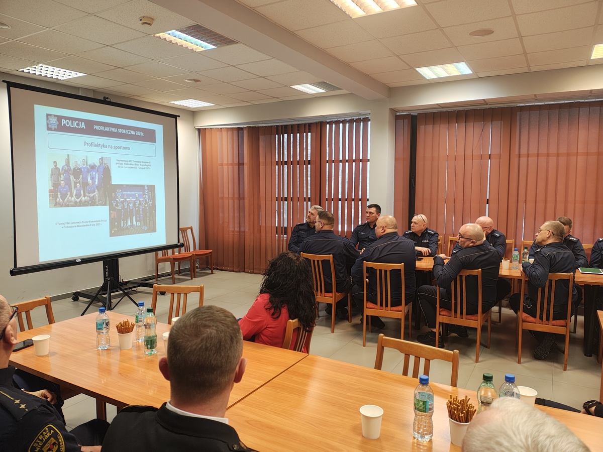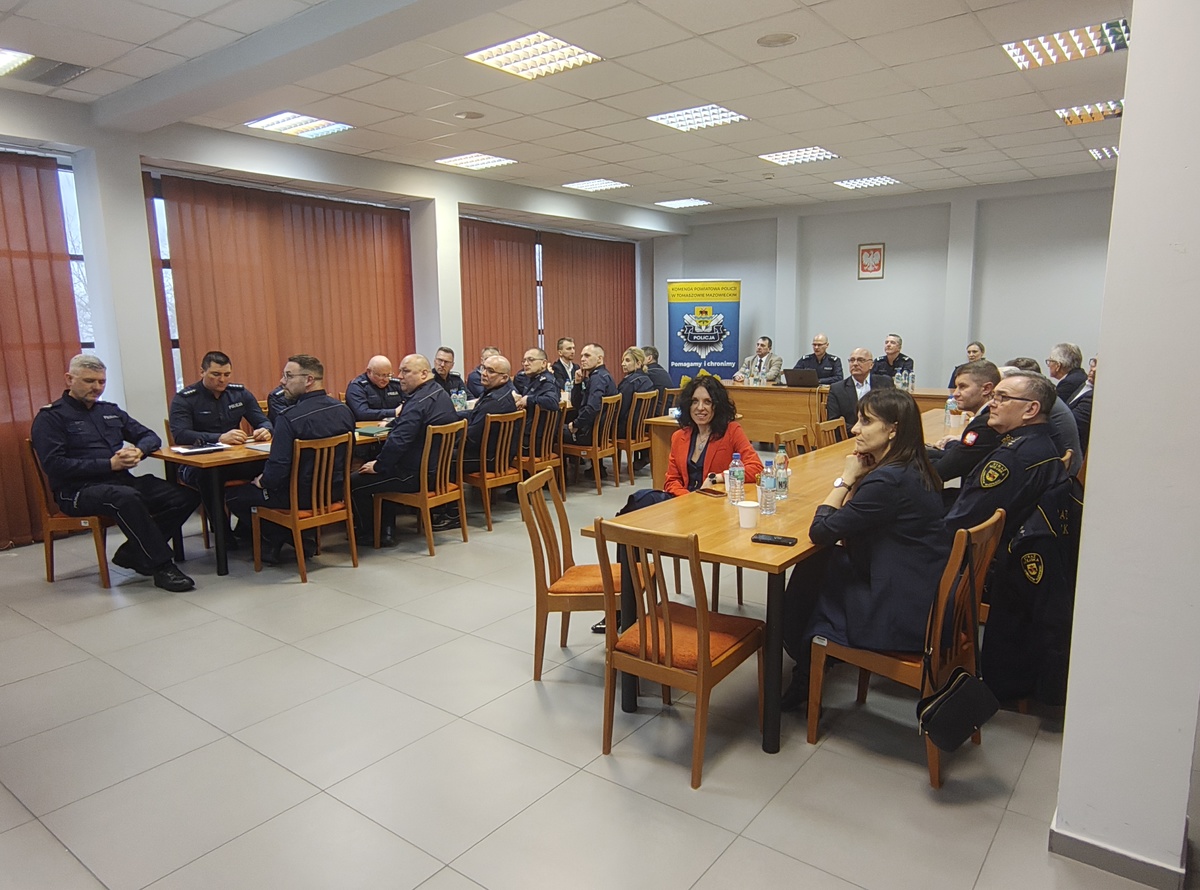Podczas narady, która była doskonałą okazją do wymiany doświadczeń i dobrych praktyk podkreślono, istotną rolę współpracy Policji z samorządami oraz innymi instytucjami odpowiedzialnymi za bezpieczeństwo mieszkańców. Wspólne działania i szybka wymiana informacji pozostają kluczowe dla skutecznego reagowania na zagrożenia. To właśnie ta współpraca jest fundamentem realnego bezpieczeństwa w powiecie tomaszowskim. Zastępca Komendanta Wojewódzkiego Policji w Łodzi mł. insp. Mariusz Siejka podczas podsumowania pracy i efektywności służby tomaszowskich funkcjonariuszy podziękował wszystkim policjantom oraz pracownikom cywilnym za ich zaangażowanie i wkład w zapewnienie porządku i bezpieczeństwa mieszkańcom powiatu tomaszowskiego.