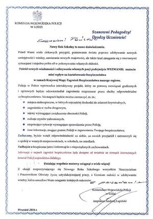 Jak co roku , 1 września ,przed szkołami pojawiły się policyjne patrole, które zadbają o bezpieczeństwo najmłodszych. Podczas spotkania z dziećmi i młodzieżą oraz pedagogami i rodzicami policjanci w szkołach na terenie województwa łódzkiego przekazali informacje dotyczącego uruchamianych krajowych map zagrożeń bezpieczeństwa.