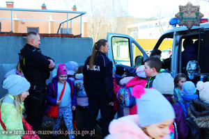 Uczniowie Szkoły Podstawowej z Łaznowa wraz z wychowawcami odwiedzili policjantów tomaszowskiej komendy, by dowiedzieć się jak wygląda policyjna służba oraz jak należy dbać o swoje bezpieczeństwo.